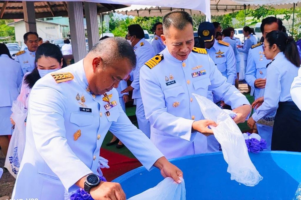 ในวันพุธที่ 28 พ.ค. 68 ศรชล.จว.สส. และ ศคท.จว.สส. โดย น.อ.อชิตะสิน กำมะณี รอง ผอ.ศรชล.จว.สส. เข้าร่วมกิจกรรมเฉลิมพระเกียรติเนื่องในโอกาสวันเฉลิมพระชนมพรรษา สมเด็จพระนางเจ้าสุทิดาพัชรสุธาพิมลลักษณ พระบรมราชินี 47 พรรษา กับหน่วยงานในจังหวัดสมุทรสงคราม สำนักงานประมงจังหวัด หัวหน้าส่วนราชการ และหน่วยงานในพื้นที่ ร่วมกันปล่อยพันธุ์สัตว์น้ำ โดยปล่อยพันธุ์ปลาน้ำจืด จำนวน 50,000 ตัว และพันธุ์กุ้งกุลาดำ จำนวน 1,500,000 ตัว ณ บริเวณท่าน้ำวัดบางพลับ ต.บางพรม อ.บางคนที จ.สมุทรสงคราม โดยมี นางนิศากร วิศิษฎ์สรอรรถ ผวจ.สมุทรสงคราม ในฐานะ ผอ.ศรชล.จว.สมุทรสงคราม เป็นประธาน