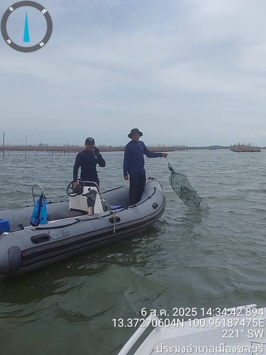 วันที่ 6 ส.ค.68 ศรชล.จว.ชบ. และ ศคท.จว.ชบ. ร่วมกับ สำนักงานประมงจังหวัดชลบุรี หน่วยปราบปรามประมงทะเลชลบุรี (อ่างศิลา) ประมงอำเภอเมืองชลบุรี โดยได้รับการสนับสนุนเรือ Mud Motor จำนวน 2 ลำ จาก มว.เรือเฉพาะกิจ ศรชล.ภาค 1 เรือตรวจการณ์ประมง 213 และเรือยางท้องแข็ง จำนวน 1 ลำ ร่วมบูรณาการปราบปรามการใช้เครื่องมือทำประมงผิดกฎหมาย (ลอบพับ) ซึ่งได้รับการร้องเรียนจากชาวประมงในพื้นที่