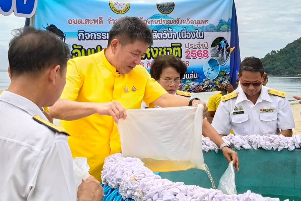 ศรชล.จว.ชพ. ร่วมกิจกรรมปล่อยพันธุ์สัตว์น้ำเนื่องในวันประมงแห่งชาติ ประจำปี 2568