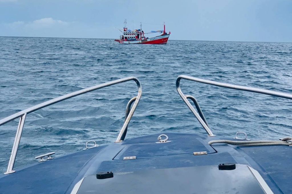 พร้อมลูกเรือสัญชาติเวียดนาม จำนวน 5 คน พบว่า เครื่องมือที่กำลังใช้ทำการประมงอยู่นั้นเป็นเครื่องมือชนิดคราดปลิง ไม่ตรงตามชนิดที่ได้แสดงให้พนักงานเจ้าหน้าที่ ศูนย์ควบคุมการแจ้งเรือเข้า-ออกปากพนัง (PIPO ปากพนัง) ตรวจสอบและตรวจพบสัตว์น้ำบนเรือเป็นสัตว์น้ำชนิด ปลิงทะเล โดยไม่พบสัตว์น้ำชนิดอื่น เป็นการใช้เครื่องมือประมงพาณิชย์โดยไม่ได้รับอนุญาต จึงควบคุมเรือเข้าเทียบท่า ณ ท่าเทียบเรือเทศบาลเพ อำเภอเมืองระยอง จว.ระยอง พร้อมนำตัวผู้ถูกจับกุมส่งพนักงานสอบสวน สภ.มาบตาพุด ดำเนินคดีไปแล้วนั้น ศรชล.ภาค 1 โดย ศรชล.จว.รย. และ ศคท.จว.รย. จึงบูรณาการร่วมกับศูนย์ป้องกันและปราบปรามประมงทะเลระยอง ในการตรวจสอบเรือในพื้นที่ จว.ระยอง ระหว่างวันที่ 12-13 พ.ย.68 นำเรือตรวจประมงทะเล 204 ออกปฏิบัติการตรวจสอบเฝ้าระวังการกระทำความผิด บริเวณระยะ 21 ไมล์ จากปากน้ำระยอง ตรวจเรือจำนวน 5 ลำ ที่ทำการประมง พบมีใบอนุญาตการทำประมงพาณิชย์ถูกต้องครบถ้วน ไม่มีการกระทำความผิดกฎหมาย และใน 13 พ.ย.68 นำเรือตรวจประมงทะเล 204 ออกปฏิบัติการตรวจสอบเฝ้าระวังการกระทำความผิดบริเวณระยะ 23 ไมล์ จากปากน้ำระยอง ตรวจเรือจำนวน 6 ลำ ที่ทำการประมงพบมีใบอนุญาตการทำประมงพาณิชย์ถูกต้องครบถ้วน ไม่มีการกระทำความผิดกฎหมาย
