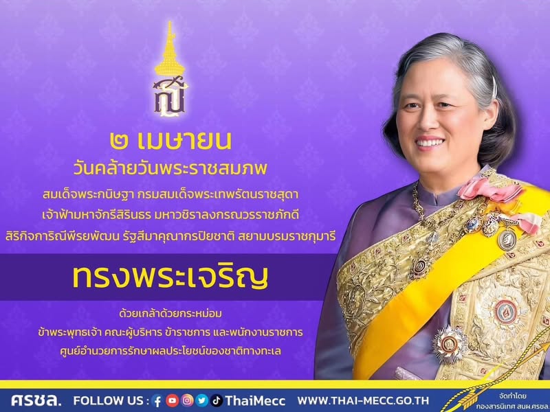 2 เมษายน วันคล้ายวันพระราชสมภพ สมเด็จพระกนิษฐาธิราชเจ้า กรมสมเด็จพระเทพรัตนราชสุดา เจ้าฟ้ามหาจักรีสิรินธร มหาวชิราลงกรณวรราชภักดี สิริกิจการิณีรยพัฒน รัฐสีมาคุณากรปิยชาติ สยามบรมราชกุมารี