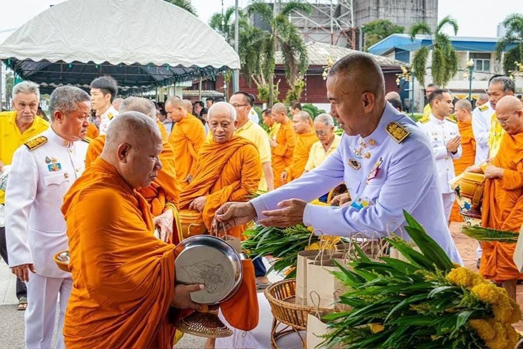 เวลา 0700 พิธีทำบุญตักบาตรถวายเป็นพระราชกุศล