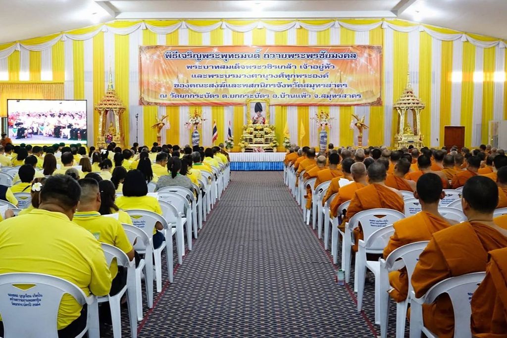 วันที่ 28 กรกฎาคม 2568 นาวาเอก นที ศรีบูรณ์ รองผู้อำนวยการศูนย์อำนวยการรักษาผลประโยชน์ของชาติทางทะเลจังหวัดสมุทรสาคร ร่วมกับ รองผู้ว่าราชการจังหวัดสมุทรสาคร รองผู้อำนวยการรักษาความมั่นคงภายในจังหวัดสมุทรสาคร ผู้บังคับการตำรวจภูธรจังหวัดสมุทรสาคร อัยการจังหวัดสมุทรสาคร พร้อมหัวหน้าส่วนราชการจังหวัดสมุทรสาคร องค์การบริหารส่วนท้องถิ่น หน่วยงานภาครัฐ หน่วยงานภาคเอกชน เข้าร่วมกิจกรรมการจัดงานเฉลิมพระเกียรติ พระบาทสมเด็จพระเจ้าอยู่หัว เนื่องในโอกาสวันเฉลิมพระชนมพรรษา 28 กรกฎาคม 2568
