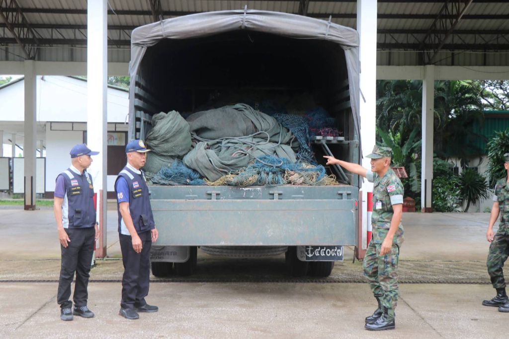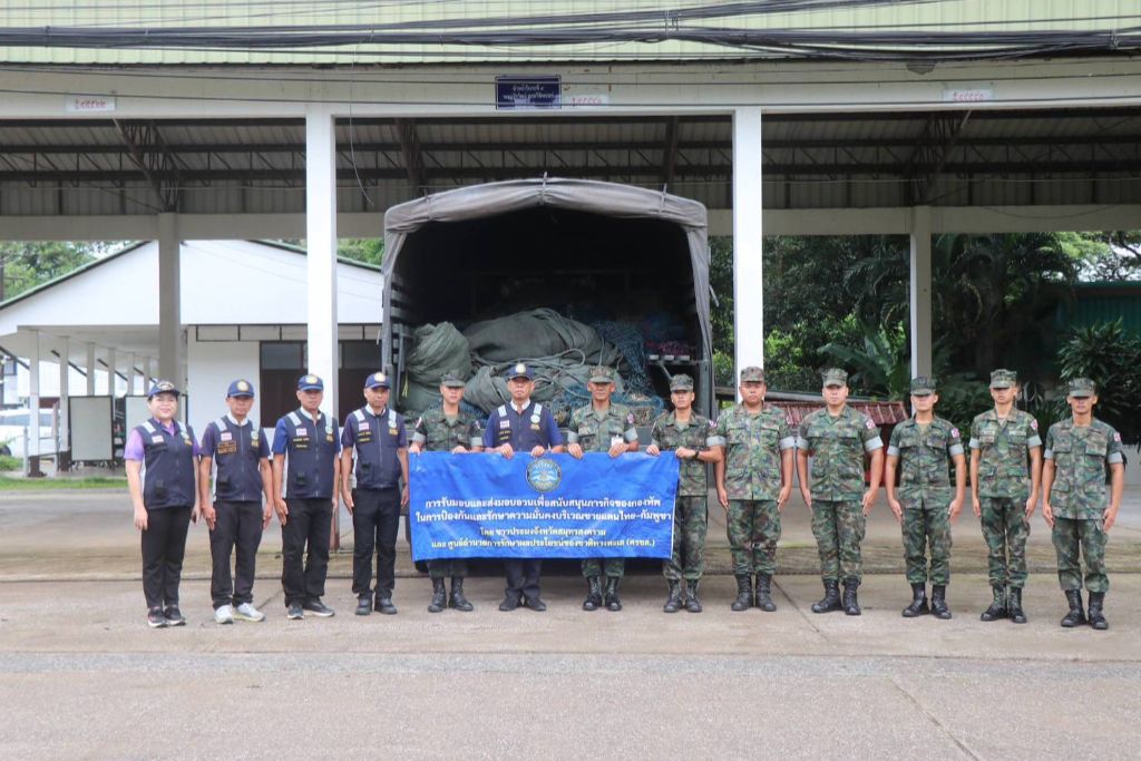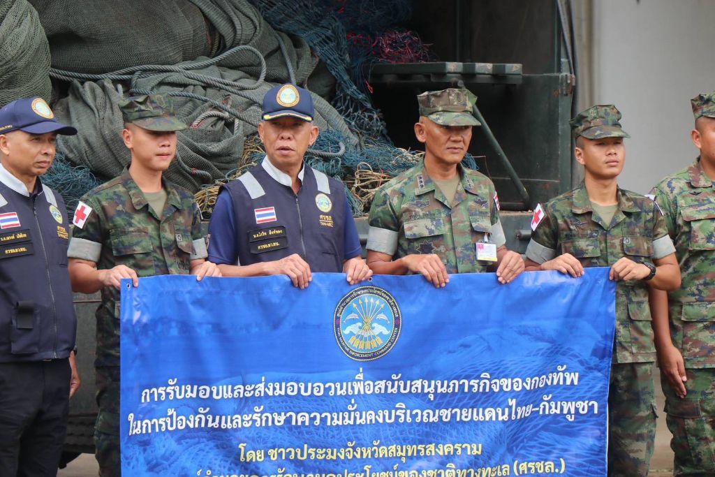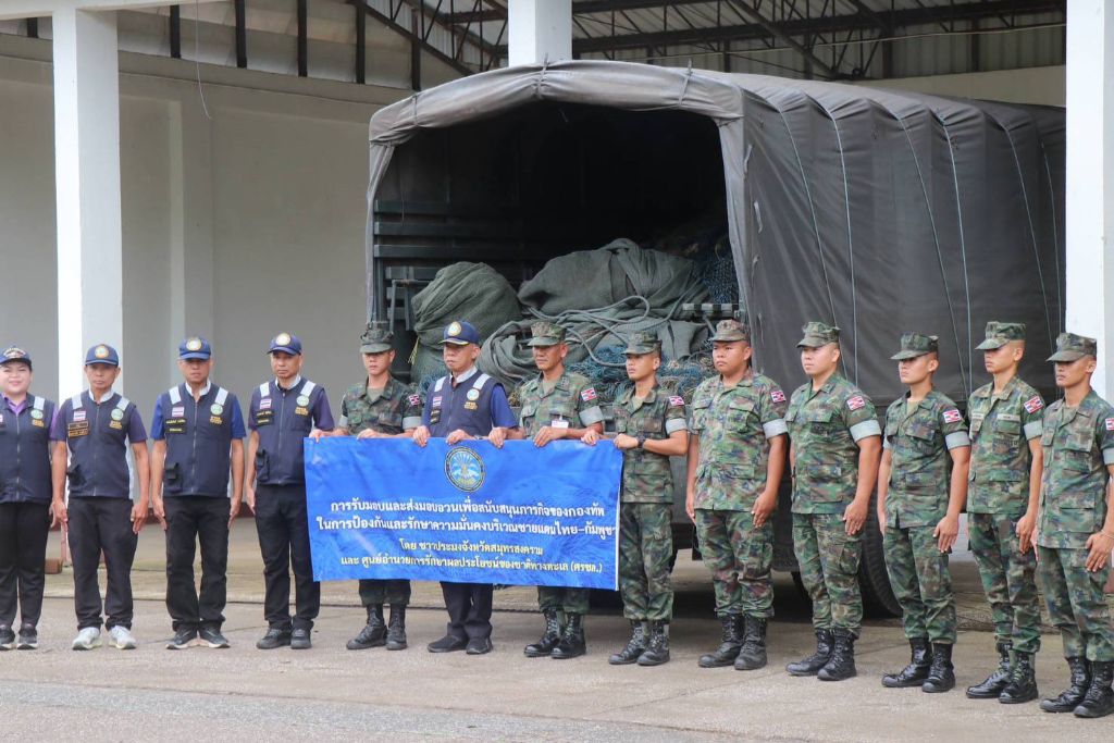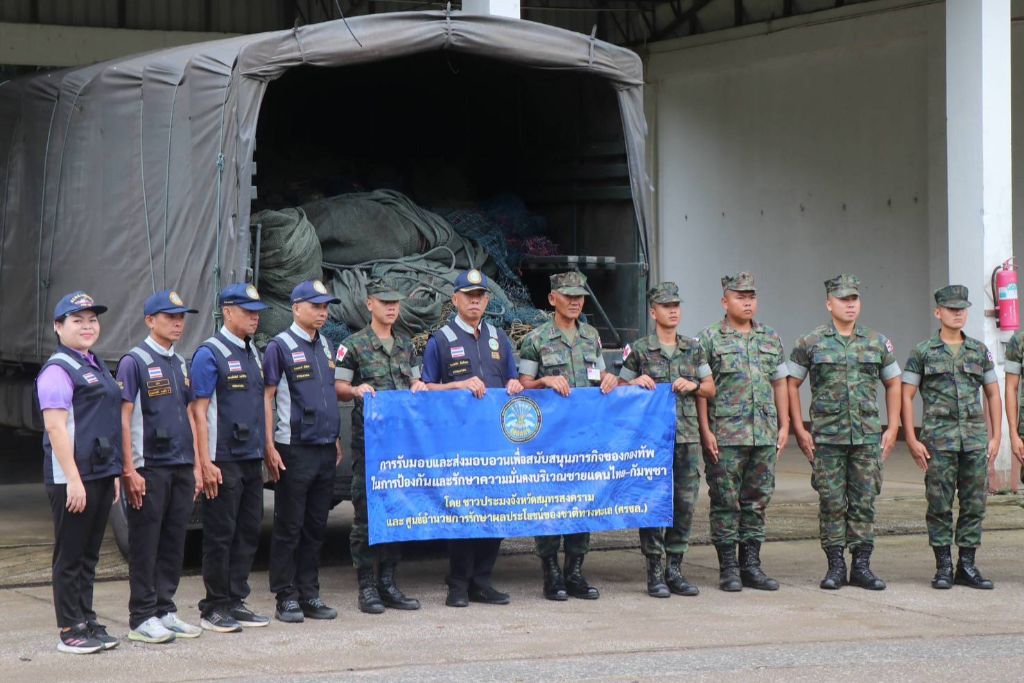 ศรชล.จว.จบ. เป็นผู้แทน ศรชล. ส่งมอบอวน จากชาวประมงจังหวัดสมุทรสงคราม เพื่อใช้สำหรับป้องกันฝั่งตรงข้ามอาจนำอากาศยานไร้คนขับมาปฏิบัติการในพื้นที่ทางทหาร กปช.จต.