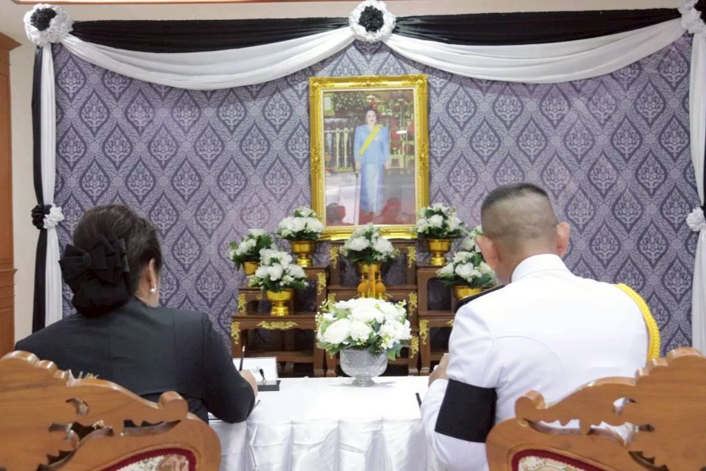 อำเภอสัตหีบ จังหวัดชลบุรี โดยมีข้าราชการ ศรชล.ภาค 1 และ ทัพเรือภาคที่ 1 เข้าร่วมโดยพร้อมเพรียง เพื่อให้ข้าราชการ พนักงานราชการ และครอบครัว ได้แสดงออกถึงความจงรักภักดี ร่วมถวายความอาลัยแด่ สมเด็จพระนางเจ้าสิริกิติ์ พระบรมราชินีนาถ พระบรมราชชนนีพันปีหลวง ประกอบด้วยพิธีถวายความอาลัยและพิธีลงนามถวายความอาลัย