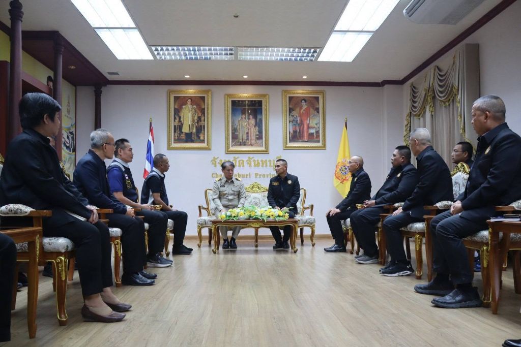 วันที่ 26 พ.ย.68 พล.ร.ท.เฉลิมชัย สวนแก้ว ผู้อำนวยการศูนย์อำนวยการรักษาผลประโยชน์ของชาติทางทะเลภาค 1 (ศรชล.ภาค 1) พร้อมด้วยคณะติดตาม เข้าหารือข้อราชการในการปฏิบัติงานของศูนย์อำนวยการรักษาผลประโยชน์ของชาติทางทะเลกับ นายมนต์สิทธิ์ ไพศาลธนวัฒน์ ผู้ว่าราชการจังหวัดจันทบุรี