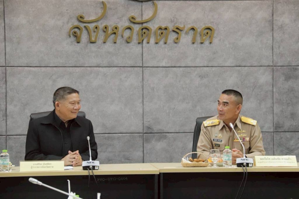 ในฐานะ ผู้อำนวยการศูนย์อำนวยการรักษาผลประโยชน์ของชาติทางทะเลจังหวัดตราด (ผอ.ศรชล.จว.ตร.) ณ ศาลากลางจังหวัดตราด สำหรับการเดินทางไปตรวจเยี่ยม พื้นที่ในครั้งนี้ ได้ออกตรวจสอบพื้นที่ตามชายฝั่งความรับผิดชอบในพื้นที่จังหวัดตราด พร้อมทั้งหารือกับกลุ่มชาวประมงในพื้นที่ และมีวัตถุประสงค์เข้ารับฟังการบรรยายสรุปผลการปฏิบัติงานในปี 2568 ที่ผ่านมาของ ศรชล.จว.ตร. และ ศคท.จว.ตร. เพื่อสร้างขวัญและกำลังใจให้กับข้าราชการในพื้นที่ และรับทราบปัญหา อุปสรรค ข้อขัดข้อง พร้อมตรวจพื้นที่ก่อสร้างอาคารสำนักงาน ศคท.จว.ตร. และมอบนโยบายในการทำงานของหน่วยงานศูนย์อำนวยการรักษาผลประโยชน์ของชาติทางทะเล และหน่วยงานที่เกี่ยวข้องในแต่ละจังหวัด