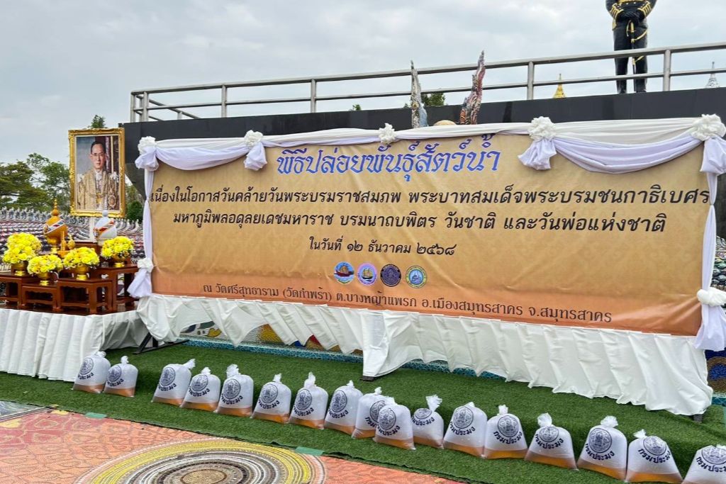 วันที่ 12 ธ.ค.68 น.อ.ณัฏฐกฤติ  บุญปาลิต รอง ผอ.ศรชล.จว.สค. ร่วมกับหัวหน้าหน่วยงาน หัวหน้าส่วนราชการ ภาคเอกชน รัฐวิสาหกิจ ผู้นำชุมชน และผู้นำท้องถิ่นในจังหวัดสมุทรสาคร เข้าร่วมพิธีปล่อยพันธุ์สัตว์น้ำ กุ้งกุลาดำ จำนวน 1,000,000 ล้านตัว เพื่อเพิ่มพูนผลผลิตสัตว์น้ำเพิ่มรายได้ให้ชาวประมง ในทะเลและพื้นที่ชายฝั่งจังหวัดสมุทรสาคร