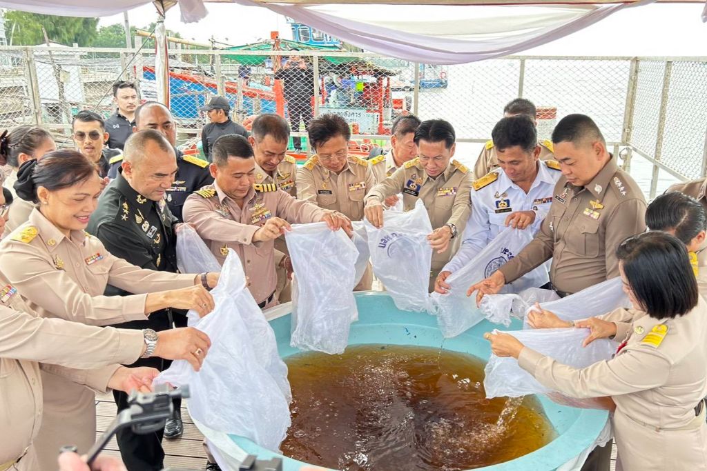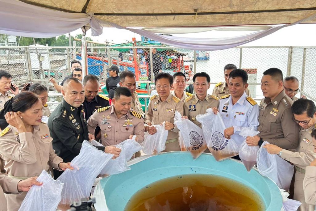 ศรชล.จว.สค. และ ศคท.จว.สค. ร่วมพิธีปล่อยพันธุ์สัตว์น้ำ กุ้งกุลาดำ จำนวน 1,000,000 ล้านตัว เพื่อเพิ่มพูนผลผลิตสัตว์น้ำเพิ่มรายได้ให้ชาวประมง ในทะเลและพื้นที่ชายฝั่งจังหวัดสมุทรสาคร