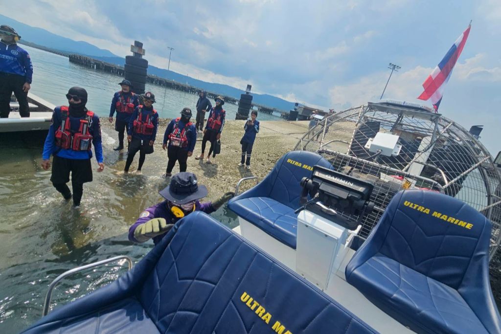 ศรชล.ภาค 1 บูรณาการเร่งเก็บกู้ซากสัตว์จากเรือขบวนการลักลอบขนสินค้าไปกัมพูชาอับปาง