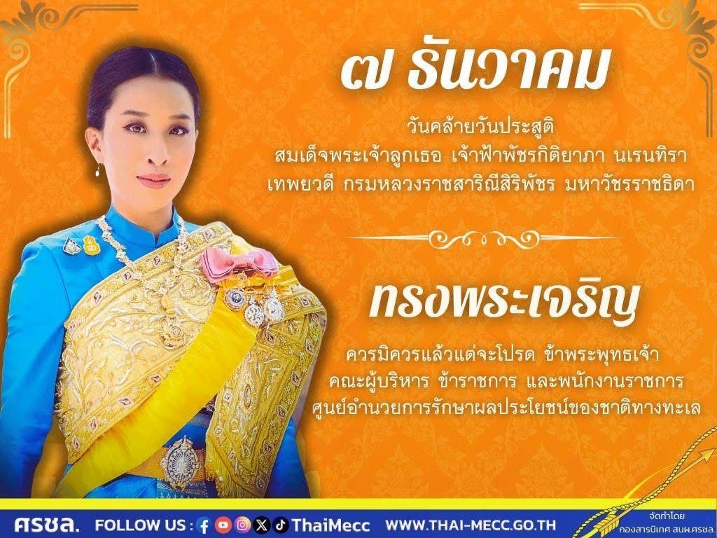 7 ธันวาคม 2568 วันคล้ายวันประสูติ สมเด็จพระเจ้าลูกเธอ เจ้าฟ้าพัชรกิติยาภา นเรนทิราเทพยวดี กรมหลวงราชสาริณีสิริพัชร มหาวัชรรราชธิดา